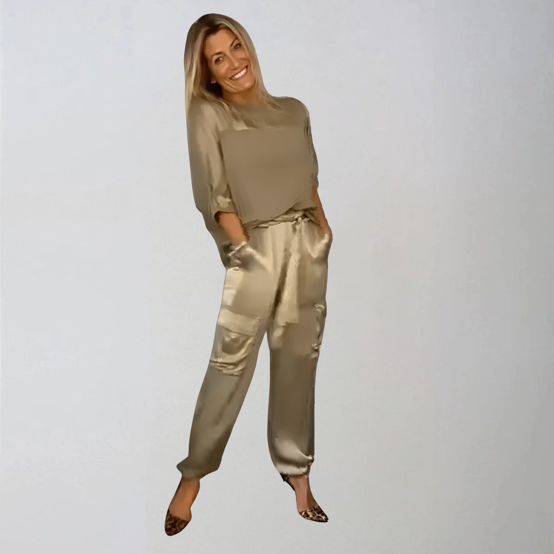 Odśwież swoją garderobę zestawem Mia, idealną kombinacją nowoczesności i codziennego komfortu. Zaprojektowany dla tych, którzy szukają eleganckiej i łatwej do noszenia mody, ten zestaw obejmuje luźny top i dopasowane spodnie, idealne do relaksu lub stylowej wycieczki.