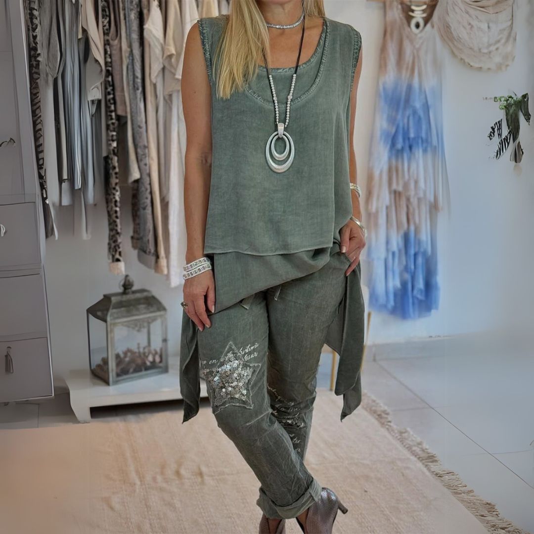 Karla | Elegancka, wygodna, kolorowa koszulka i drukowane spodnie